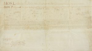 1644. MANUSCRITO: (GUERRA SEGADORS). PHILIPPUS DE LA MOTTE OUDENCOUR, duque de Cardona. Manuscrito sobre pergamino 34 x 58 cm. Barcelona. 5 Diciembre 1644, la firma indica ´le ducdecardonne´. El documento apela a la autoridad...