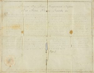 1751. Privilegio perpetuo a favor del Marqués Joaquin Guzman y a su descendencia. Lleva sello de lacre. Pequeña pérdida de soporte en el pliegue central que afecta alguna palabra del texto. Felipe I de Parma es el cuarto hijo de Felipe V, su madre fue Isabel de Farnesio. En 1748 había recibido, tras la firma de la paz de Aquisgrán, los ducados de Parma, Plasencia y Guastalla, contrajo matrimonio con la hija de Luix XV de Francia.