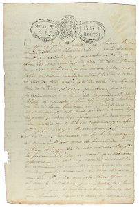 1830. MANUSCRITO: (ESCLAVITUD-CUBA). MANUSCRITO NOTARIAL DE VENTA DE UN ESCLAVO. Enero de 1830. 1 folio escrito en recto y verso. Contiene un sello húmedo y uno seco. Escritura de la venta de Manuel de Jesús de cinco años a...