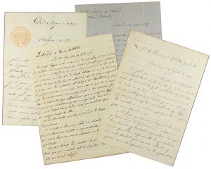 1850-1860. MANUSCRITO: (GUERRAS CARLISTAS). CONJUNTO DE DOCUMENTACIÓN, CARTAS APUNTES, FOLLETOS, DEL CADETE MIGUEL SALAMÓ. Conjunto de cuartillas manuscritas sobre papel, algunas cartas, incluye un folleto sobre caballeros...