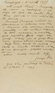 1955. AUTÓGRAFO: (COLECCIONISMO). PLA, JOSEP: CARTA MANUSCRITA DE JOSEP PLA. Palafurgell, 1955. 19 x 11,5 cm. Con firma autógrafa. Carta manuscrita dirigida a ´Lluis´ emitida en la localidad natal del escritor.