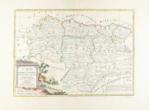 1776. MAPA: (GALICIA). LI REGNI DI GALIZIA, ASTURIES, LEON, CASTIGLIA VECCHIA CON LA SIGNORIA DI BISCAGLIA DI NUOVA PROJEZIONE. Venezia: Imp. Antonio Zatta, 1776. Huella 29 x 40,5 cm, pape 37,3 x 49,5 cm. mapa grabado con los...