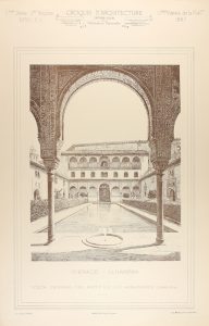 lám. 1 h. + 72 lám. III: (1870-1871) 1 h. + 72 lám. + 1 h. + 72 lám. IV: (1873-1874-1875) 1 h. + 72 lám. 1 h. + 70 lám. + 1 h. + 72 lám. Faltan 2 lám. nº 1 de marzo y nº 6 de noviembre de 1874. V: (1876-1877) 1 h. + 72 lám. + 1 h. + 72 lám. 1 lám. con pequeña pérdida de papel en una punta. VI: (1878-1879) 1 h. + 72 lám. + 72 lám. VII: (1881 y 1883) 1 h. + 72 lám. + 1 h. + 71 lám. Falta la lám. nº 2 del mes de marzo de 1883. VIII: (1886-1887): 72 lám. + 72 lám. Pequeñas restauraciones en el margen de alguna lám. Ligeras arrugas y ocasionales pérdidas de papel en los márgenes y/o puntas. 8 vol. presentados en carpetas originales de cartoné con la lomera en tela, una de ellas no es original y dos lomeras estan restauradas. Más de 1.200 lám. que contienen multitud de planimetrías, secciones y alzados de todo tipo de construcciones, tanto públicas como privadas, jardines, fuentes, composiciones y reconstrucciones de monumentos clásicos. Se incluyen convocatorias de concursos públicos de arquitectura. Las lám. van compañadas de una tabla anual de materias. La revista que presentamos tenía una periocidad de 6 lám. mensuales, se empezó a publicar en mayo de 1866, por ese motivo los primeros años se presentan de mayo a abril. En cada carpeta se incluyen las lám. de dos años, menos en una que hay tres. En conjunto 17 años casi completos de esta magna publicación.