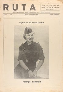fotografías en el texto. La primera portada lleva una fotografía de una mujer con el uniforme de falange, las otras tres portadas dedicadas a Franco, Queipo del Llano y Mola. Desconocemos si la revista tuvo más continuidad o estos cuatro números son los únicos que se publicaron. Muy rara.