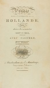 1812 ca. LIBRO: (VIAJES). VOYAGE DANS L´INTERIEUR DE LA HOLLANDE, FAIT DANS LES ANNÉES 1807-1812. Amsterdam: Chez E. Maaskamp, s.a. 3 vol. en 8º. I: Portada + VIII + 216 p. + 2 h. + 20 lám. grabadas. II: (sin portadilla ni...