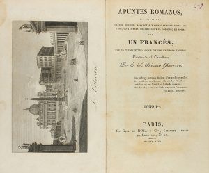 de Rosa y Cia., 1826. 2 vol. en 8º menor. I: Frontis + 206 p. + 1 h. Levísimo cerco de humedad en el margen inferior de la últimas páginas. II: Frontis + 1 h. + 200 p. Ilustr. con dos frontis grabados del Vaticano y el Capitolio. 2 vol. enc. en pasta española, cortes pintados, puntas ligeramente rozadas.