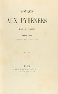 1860. LIBRO: (VIAJES). TAINE, H.: VOYAGE AUX PYRENEES. Paris: Ed. Librairie Hachette, 1860. 4º mayor. 3 h. + 551 p. Profus. ilustr. con grabados en el texto de Gustave Doré. Enc. media piel y puntas, lomera cuajada,...
