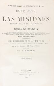 1863. LIBRO: (VIAJES-MISIONES). HENRION, BARON DE:. HISTORIA GENERAL DE LAS MISIONES. Barcelona: Libr. Juan Oliveres, 1863. 2 tomos en 4 vol. en 4º mayor. I y II: 3 h. + 708 p. III y IV: 3 h. + 694 p. + 2 h. Ilustr. con 2...
