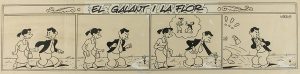 Originales artísticos para ilustrar la primera época de TBO: ´El galant i la flor´ y ´Aprofitant l´ocasió´. Curiosas tiras cómicas con texto sobrepuesto en catalán. Pequeños retoques. Anotaciones manuscritas a lápiz. Una de ellas presentada en paspartú.