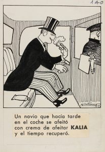 1930 ca. ORIGINAL ARTÍSTICO: CASTANY: LOTE DE 4 DIBUJOS ORIGINALES EN UNA TINTA. Dibujos originales para publicidad de crema de afeitar Kalia y Chote.