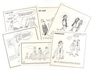 1950. ORIGINAL ARTÍSTICO: DECENAS DE ORIGINALES VIÑETAS EN TINTA. Diferentes tamaños y dibujantes, muchos firmados por Eduardo Layus, Peñarroya y alguno Gros. Muchas viñetas deportivas, sociales, etc.