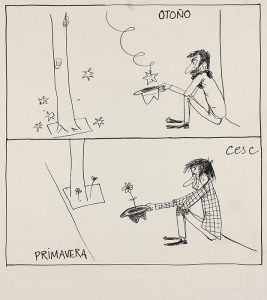 1956. ORIGINAL ARTÍSTICO: (HUMOR). [VILA RUFAS, FRANCESC] CESC: ORIGINAL ARTÍSTICO. 1 lám. en b/n, tinta sobre papel de gramaje grueso. 1956 ca, firmadas por el autor (CESC). 18 x 16 cm. Original artístico formado por...