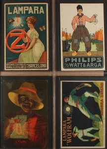 bebidas, series del Licor Feuillantine, Valdespino y la Peruana; 30 postales de bebidas, Canigou, Moët & Chandon; 12 postales de Philips; 95 postales de productos farmacéuticos como ´Laxativo Bromo Quinina´, ´Píldoras hermosilla o Iodotona Vian´, etc.