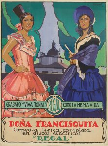 1930 ca. CARTEL: PENAGOS: DOÑA FRANCISQUITA. Tolosa: Graf. Laborde y Labayen. 71 x 51,5 cm (28 x 20 in). Cartel cromolitográfico realizado por Penagós como publicidad a los discos de la obra lírica Doña Francisquita. Algunas...