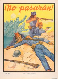 1936 ca. CARTEL: NO PASARÁN. ¡GLORIA A LAS MILICIAS DEL PUEBLO!. S.l.: julio 1936. 43,5 x 33 (17 x 21,8 in). Cartel cromolitográfico. Entelado. A.