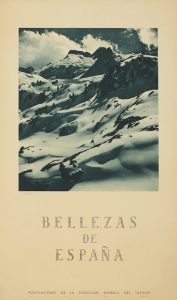 1940 ca. CARTEL: BELLEZAS DE ESPAÑA. Barcelona: Huecograbado Rieusset. Fotograbado del Valle de Arán, fotografía realizada por Kindel. 99,5 x 62 cm (39,2 x 24,5 in). Entelado, con el sello húmedo del entelador. A.