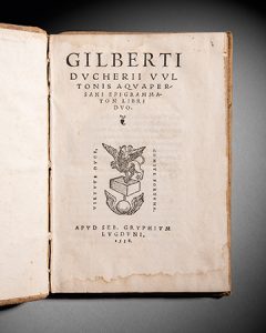 DUCHER, Gilbert - Aquapersani Epigrammaton Libri Duo Lyon, Sébastien Gryphe, 1538 EXEMPLAIRE EN RELIURE DE L'ÉPOQUE.