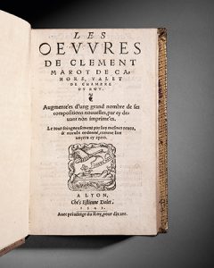 MAROT, Clément - Les OEUVRES de Clément Marot de Cahors, Valet de chambre du Roy. Lyon, Étienne Dolet, 1543 ÉDITION AUGMENTÉE DE PSAUMES TRADUITS PAR MAROT Troisième édition et dernière édition des Oeuvres de Marot imprimée par Étienne...