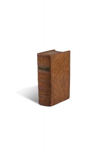 Paris, Abel l’Angelier, 1602. in-8, 4 ff., 1165 pp. 366 ff. de tables, veau blond marbré, dos à nerfs, pièce de titre verte, tranches rouges. Titre-frontispice gravé sur cuivre. Page de titre restaurée, petite galerie de vers dans la table la plupart du temps dans un angle en marge avec légère atteinte au texte pour certains feuillets.