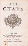 MONCRIF. - Les Chats. Paris, Gabriel-François Quillau, 1727, In-8, veau brun, dos à nerfs richement orné et doré, pièce de titre de maroquin rouge, coupes dorées. Reliure restaurée. 9 planches dont deux dépliantes. Rousseurs et...