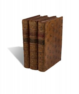 Paris, De Bure, 1778. 2 tomes en 3 volumes In-4 et un bel Atlas In-plano. XXX-(1)-347p+677p+xvi-627p. Plein veau pour les volumes de texte et reliure cartonnée pour l’atlas. Les volumes de texte sont illustrés d’un frontispice, d’un tableau h.-t. et de 54 (sur 56) planches finement gravées en taille-douce d’après Jean-Baptiste Le Prince, Moreau le jeune et Caresme de Fécamp, L’atlas est composé d’un frontispice d’après le Prince gravé par Trillard et 30 cartes, coupes, vues de profil, etc. Cet ouvrage est l’un des plus beaux récits de voyages publiés au XVIIIe siècle. Bel ex-libris de la Bibliothèque du Château de Menneval. Édition originale de ce somptueux voyage en Russie, en Sibérie et au Kamtchatka.