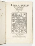 HOMÈRE. Les dix premiers livres de l'Iliade d'Homere, prince des poetes : traduictz en vers francois, par M. Hugues Salel, de la chambre du Roy, & Abbé de S. Cheron. Paris, [Jean Loys pour] Vincent Sertenas, 1545. In-folio [293 x 192 mm] de 350...