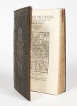 "SUPERBE RELIURE DU XVI° SIÈCLE D'UN DESSIN RICHE ET ÉLÉGANT AVEC COMPARTIMENTS DORÉS ET EN MOSÏQUE COUVRANT ENTIÈREMENT LE DOS ET LES PLATS. Conservation parfaite.")