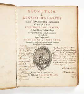Descartes fit paraître La Géométrie en appendice au Discours de la méthode (1637) qu'il avait confié au même imprimeur, Jean Maire.