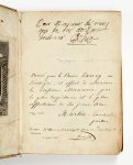 Plusieurs inscriptions manuscrites restituent la généalogie de l'exemplaire qui devint la propriété du Baron Larrey, chirurgien en chef de la Grande armée.