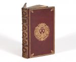 Maroquin rouge, dos à nerfs orné, pièce de titre de maroquin olive, triple filet doré encadrant les plats avec fleurons dans les angles et armes dorées au centre, coupes filetées or, bordures intérieures décorées, tranches dorées sur marbrures (reliure de l'époque).
