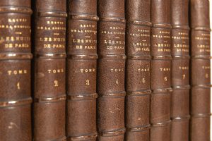 [RESTIF DE LA BRETONNE, Nicolas Edme.] - Les Nuits de Paris, ou le Spectateur nocturne. Londres et Paris, 1788-1794. 16 tomes en 8 volumes in-12 [175 x 103 mm] : Demi-maroquin brun à coins, dos à nerfs, non rognés, têtes dorées (reliure du...
