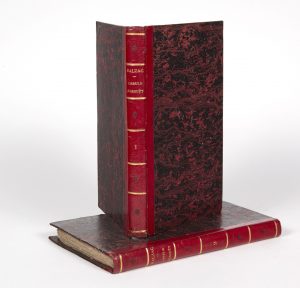 BALZAC, Honoré de. Ursule Mirouët. Paris, Hippolyte Souverain, 1842. 2 volumes in-8 [225 x 136 mm] de (2) ff., 327 pp. ; 336 pp. : Demi-chevrette rouge, dos lisses ornés de filets dorés et de fleurons noirs, entièrement non rognés (reliure...