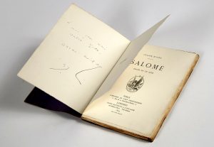WILDE, Oscar. Salomé. Drame en un acte. Paris, Librairie de l'Art indépendant, Londres, Elkin Mathews et John Lane, 1893. In-8 [203 x 154 mm] de 84 pp., (2) ff., le dernier blanc : Broché, couvertures violettes, titre en lettres argentées...