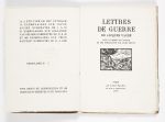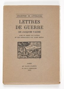 VACHÉ, Jacques. Lettres de guerre. Avec un dessin de l'auteur et une introduction par André Breton. Paris, Au Sans Pareil, 1919. In-12 [189 x 138 mm] de (4) ff. le premier blanc, V pp., (1) f., 32 pp., (4) ff. le dernier blanc : Broché, non...