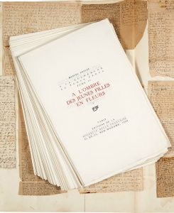 Un tirage de cinquante exemplaires d'À l'ombre des jeunes filles en fleurs, sur grand papier, avec des placards d'épreuves corrigées par l'auteur y pourvoira" (Lettres au duc de Valentinois, 2016, préface p. 10). À sa grande déconvenue, l'auteur eut du mal à écouler la totalité du tirage, certains de ses amis fortunés n'ayant pas répondu à son attente.