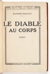 RADIGUET, Raymond. Le Diable au corps. Roman. Paris, Bernard Grasset, 1923. In-12 [184 x 119 mm] de 238 pp., (1) f. blanc : Demi-maroquin brique à bandes, dos à quatre nerfs, non rogné, tête dorée, couvertures et dos conservés, étui...
