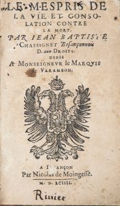 ► ÉDITION ORIGINALE, DE LA PLUS GRANDE RARETÉ, DU CHEF-D’ŒUVRE POÉTIQUE DE JEAN-BAPTISTE CHASSIGNET, poète né à Besançon dans les années 1570 et mort en 1637.
