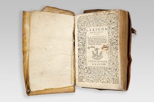 CONSTANTIN (Robert). Lexicon graecolatinum. [Genève], Jean Crespin, 1568. In-8, vélin souple à recouvrement, traces d’attaches, tranches lisses (Reliure de l’époque).