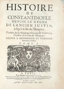 COUSIN (Louis). Histoire de Constantinople depuis le règne de l’Ancien Justin, jusqu’à la fin de l’Empire. Traduits sur les originaux grecs par Mr Cousin, Président en la Cour des Monnoyes. Dédiée à Monseigneur de Pompone Secrétaire...