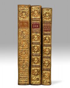 In-8, veau marbré, filet à froid encadrant les plats, dos orné, pièce de titre rouge, tranches rouges (Reliure de l'époque).