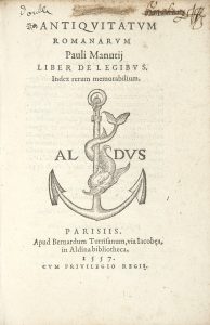 Réédition, à la même date que l’originale, de la tétralogie sur les antiquités de Paul Manuce, seul volet publié de son vivant.