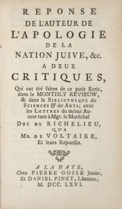 — Réponse de l’Auteur de l’Apologie de la nation juive, &. à deux Critiques, qui ont été faites de ce petit Ecrit, [...].
