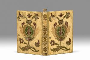 Lord Carnarvon (n°18) en avait un exemplaire dans une curieuse reliure de Monnier, en maroquin blanc à mosaïque de fleurs.