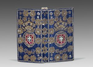 ► DÉLICIEUSE RELIURE DE SOIE BRODÉE AUX ARMES DE MICHEL Ier, ROI DU PORTUGAL DE 1828 À 1834.