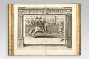 ► SUPERBE ILLUSTRATION gravée en taille-douce par Crispin Van de Passe, comprenant un titre-frontispice à double page, 4 portraits de Louis XIII, Roger de Bellegarde, Pluvinel et Menou, et 57 planches à double page montrant des airs de manège, des joutes et des mors.