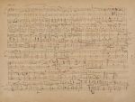 Emmanuel CHABRIER (1841-1894). Manuscrit musical autographe ; 2 pages oblong in-4 (sous verre).. Belle page de pièces pour piano de jeunesse, sur papier à 16 lignes, comprenant la fin d’un morceau (12 mesures, avec ces notes : « rentrer en...