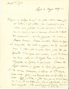 a cru avoir perdu son amitié. Il cherchait en lui le blâme et pensait pouvoir trouver l’explication dans le secret du mariage, mais il avait tort. Nanna est toujours aussi bonne et aimable… Il annonce l’envoi de trois petites chansons. Il n’a pu lui écrire plus tôt, ayant été occupé par les répétitions d’un de ses anciens opéras, Elisabetta al castello di Kenilworth, qui nécessitait quelques remaniements avant d’être joué le 6 juillet à l’Opéra San Carlo : « Cartoni l’embellira, et Sigetto saura le rendre divertissant »… Il termine en la priant de saluer quelques proches de sa part. « Si jamais vous me répondez, je vous écrirai davantage de chansons »…