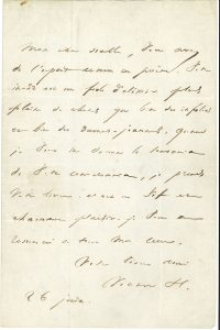 Victor HUGO. L.A.S. « Victor H. », 26 juin [1841], à Alexis-Eugène de La Rosière ; 1 page in-8, adresse.. « Mon cher diable, vous avez de l’esprit comme un poëte. Votre in-32 est une fiole d’élixir plus pleine de choses que bien des...