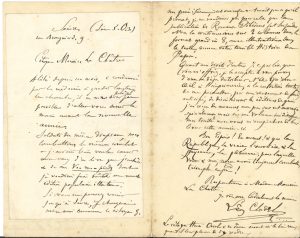 faites, j’estime que mes Romans Plébéiens doivent être publiés dans le format des œuvres de V. Hugo. Nous commencerions par N’a qu’un œil […]. Trente mille exemplaires de mes Va-nu-pieds illustrés ont été vendus en moins de deux ans »… Consignes pour l’impression et les droits. « Bon espoir ! En avant ! & que la République, la vraie, l’ouvrière & la paysanne, la plébéienne, pour laquelle vous & moi, nous avons toujours combattu, triomphe enfin ! »… [Fin décembre 1880]. « Soldats du même drapeau, nous combattons le même combat »… 1er janvier 1881. Il signera volontiers son traité avec « vous, prolétaire », mais doit se « délivrer des bourgeois avec qui j’ai dû traiter avant de vous rencontrer »… – Liste commentée de ses œuvres « qui pourraient figurer sous le titre projeté de Romans Plébéiens » : 9 titres en ordre chronologique, du Bouscassié à Crête-Rouge, et annonce de N’a qu’un œil, « chez Charpentier probablement »… 12 janvier 1881. Il va confier leurs traités signés à son beau-frère Félix Mullem, et donne son bon à tirer pour les livraisons 1 à 20 des Romans Plébéiens : N’a qu’un œil… 13 janvier 1881, contrat pour l’édition des Romans plébéiens, écrit et signé par Maurice Lachâtre, et signé par Cladel. 7 mai 1887. Il a été pris par son roman INRI, « qui fera crier en automne la bourgeoisie de France et de Navarre. Ah ! mon ami, je ne ménage pas la clique qui nous gouverne, vous verrez ça ! »… Il corrige Gueux de marque, qui paraîtra à la fin du mois… Instructions pour des épreuves, recommandations pour des affiches publicitaires, rendez-vous, etc. .On joint 2 lettres-manifestes en fac-similé (défauts) des 1er et 2 février 1881 ; 3 L.A.S. de son épouse Julia, à H. Oriol (ou à Mme) ; une L.A.S. du chansonnier Georges Coutan (Pasquin) sur sa « chanson de village » pour la nouvelle édition de N’a qu’un œil (20 janvier 1881) ; et le traité de cession par Lachâtre des clichés de N’a qu’un œil (et du Capital de Marx) à Marie-Thérèse Garrette (31 décembre 1882).