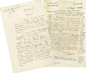 de l’illustrateur Montbart à Londres, qui a fait une quantité de dessins « sur les événements de la commune ». Il propose un petit bouquin pour la « Bibliothèque démocratique » : « J’aurais de bonnes choses à dire, m’adressant surtout aux paysans et aux ouvriers »… Il demande des livraisons de l’Histoire de la Révolution française de Louis Blanc… 2 février 1875. Il n’a pas l’intention « de faire le procès des Versaillais ni d’entrer en fureur contre eux », mais de présenter les faits de la Commune, surtout concernant le XVIIIe arrondissement, qui a joué un rôle si important, et sur les derniers jours. « J’ai fait une Carmagnole sur les événements, intitulée La Communarde. Nous la faisons éditer et elle sera vendue au profit d’une école fondée ici pour les enfants de réfugiés. […] J’ai fait une scène en 30 vers que j’ai envoyée à Hugo ; c’est une femme qui cherche son mari derrière les barricades après la commune, c’est très réussi »… 23 mars 1875. Annonce de l’envoi de de 150 Communardes, et demande de conseils pour placer sa chanson à Bruxelles. Mon homme fait son chemin à Paris. « J’ai une chose très typique, intitulée : Au mur. C’est un capitaine à table et à qui l’on amène des prisonniers. Son éternel refrain est : au mur. Il y envoie des siens et des nôtres. […] Des choses de ce genre resteront, je crois, et caractériseront une époque »… 20 juin 1879. Il est heureux de connaître le citoyen Oriol : « Vous ferez du bien à la cause en poussant ma publication »… Il l’entretient de la diffusion du Prolétaire… « Guesde est, m’a dit Maujean, sur le point de faire quelque chose comme un journal. Si vous voyez le citoyen Paulard poussez-le »… Précisions sur ses arrangements avec le libraire Verrycken à Bruxelles, et demande des résultats de vente, afin qu’il augmente ou diminue son tirage, « pour moi une question de vie ou de mort, n’étant pas garni d’argent »… 20 juin 1879. Sur son projet de s’installer à Bruxelles, et de contracter un emprunt auprès d’un particulier fortuné, contre cession de ses droits d’auteur jusqu’à extinction de la dette… 20 juin 1879. Longue lettre d’affaires : offres de service pour son Encyclopédie, exigences pour sa brochure (prospectus, diffusion)…